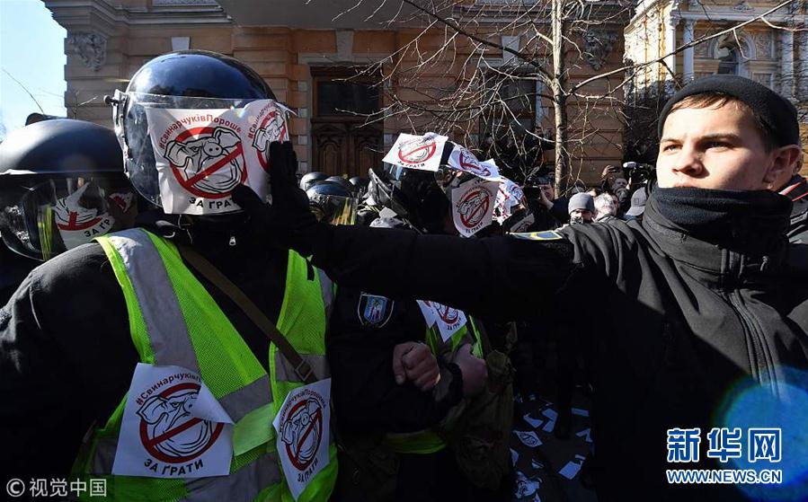 當?shù)貢r間2019年3月9日,烏克蘭基輔,烏克蘭民族主義政黨的激進分子集會要求調(diào)查烏克蘭武裝部隊官員的腐敗問題,與警方發(fā)生激烈沖突。(圖片來源:視覺中國)
