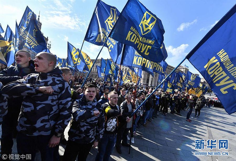 當地時間2019年3月9日,烏克蘭基輔,烏克蘭民族主義政黨的激進分子集會要求調查烏克蘭武裝部隊官員的腐敗問題,與警方發生激烈沖突。(圖片來源:視覺中國)