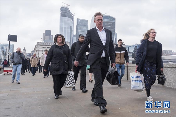 這是3月6日,在英國(guó)倫敦,人們從通往金融城的倫敦橋上經(jīng)過(guò)。 新華社發(fā)(史蒂芬·程 攝)
