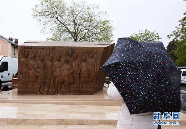 5月4日,在距法國巴黎100多公里的小城蒙塔日,《百年豐碑》大型雕塑被安放在火車站前的鄧小平廣場。新華社記者 高靜 攝