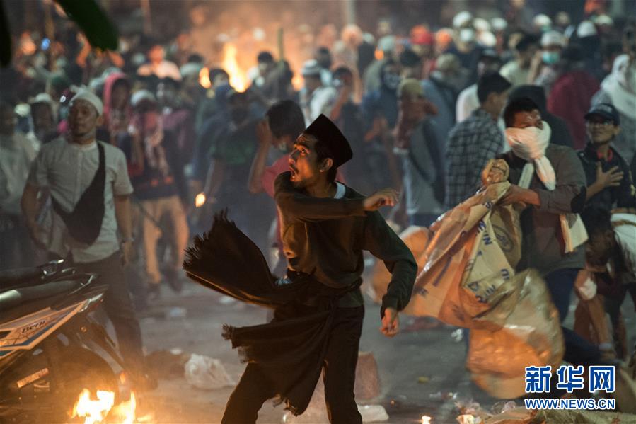 這是5月22日在印度尼西亞首都雅加達拍攝的騷亂現場。新華社發(祖卡南 攝)