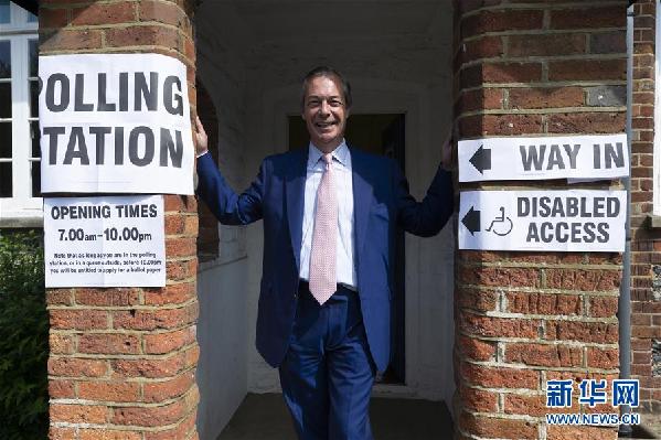 5月23日,在英國比金希爾,“脫歐黨”領(lǐng)袖奈杰爾·法拉奇在投票后離開。五年一次的歐洲議會選舉于5月23日至26日舉行。新華社發(fā)(雷伊·唐攝)