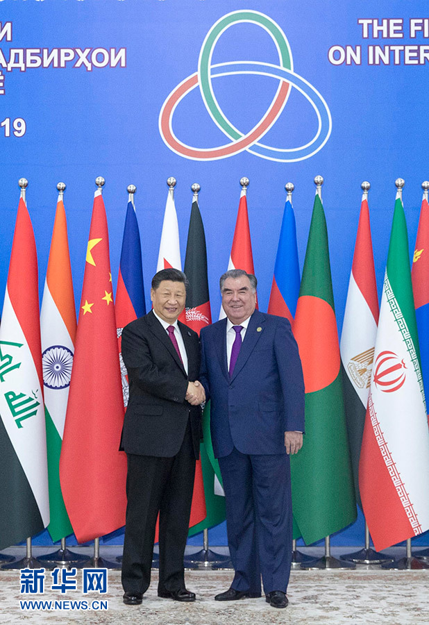 6月15日,亞洲相互協(xié)作與信任措施會(huì)議第五次峰會(huì)在塔吉克斯坦首都杜尚別舉行。國(guó)家主席習(xí)近平出席峰會(huì)并發(fā)表重要講話。這是習(xí)近平抵達(dá)納烏魯茲宮迎賓廳,受到塔吉克斯坦總統(tǒng)拉赫蒙熱情迎接。 新華社記者 沙達(dá)提 攝