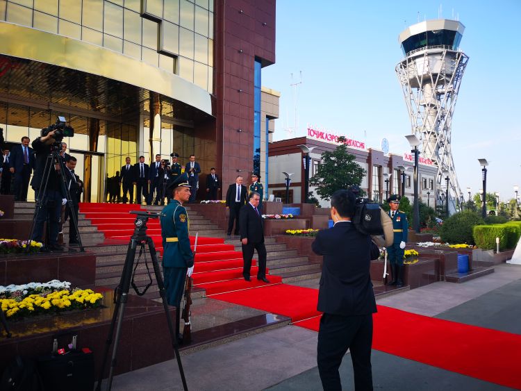 在出席完比什凱克舉行的上合組織峰會后,為能親自到機場迎接習主席,拉赫蒙總統提前趕回國內。15日下午會見開始前,拉赫蒙總統在總統府前廣場為習主席安排盛大歡迎儀式。習主席感慨說,我再一次感受到了塔吉克斯坦人民的熱情。