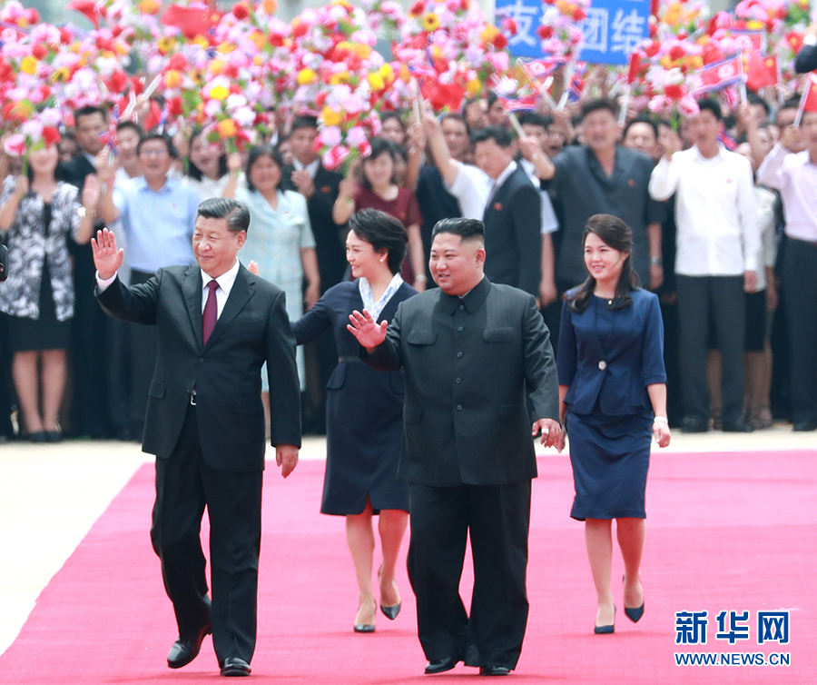 6月20日,中共中央總書記、國(guó)家主席習(xí)近平乘專機(jī)抵達(dá)平壤,開始對(duì)朝鮮民主主義人民共和國(guó)進(jìn)行國(guó)事訪問。朝鮮勞動(dòng)黨委員長(zhǎng)、國(guó)務(wù)委員會(huì)委員長(zhǎng)金正恩和夫人李雪主到機(jī)場(chǎng)熱情迎接習(xí)近平和夫人彭麗媛。朝方在機(jī)場(chǎng)舉行隆重歡迎儀式。 新華社記者 鞠鵬 攝