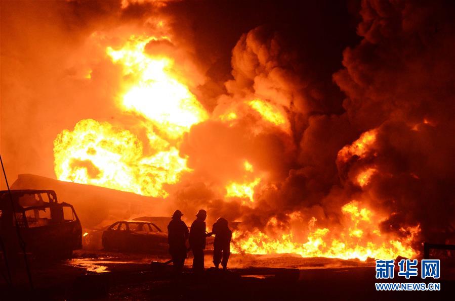 這是7月4日在尼日利亞拉各斯拍攝的輸油管道爆炸起火事故現(xiàn)場(chǎng)。新華社/尼通社