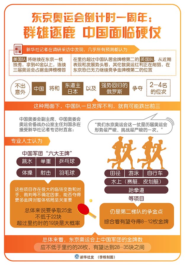 及時當勉勵,歲月不待人!東京奧運會在一步步走近,人們有理由相信,再經過一年精心準備,中國體育健兒在東京賽場將再鑄輝煌!(記者:王恒志、江紅、劉陽、林德韌、周欣、張榮峰、李嘉、張逸飛、肖亞卓、吳俊寬、沈紅輝)