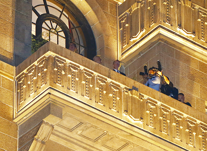 夜色下的浦江兩岸涼風習習,20時05分,劉鶴副總理與美國貿易代表萊特希澤、財政部長姆努欽登上了和平飯店九樓的露臺共覽浦江。這里還有一個小細節,劉鶴副總理與萊特希澤、姆努欽在露臺上還轉過身來以陸家嘴夜景作為背景拍照留念。