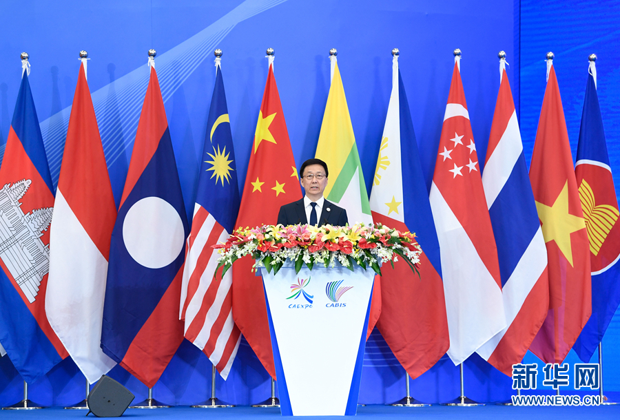 9月21日,第十六屆中國-東盟博覽會和中國-東盟商務與投資峰會在廣西南寧開幕。中共中央政治局常委、國務院副總理韓正出席開幕式并發表主旨演講。 新華社記者 申宏 攝