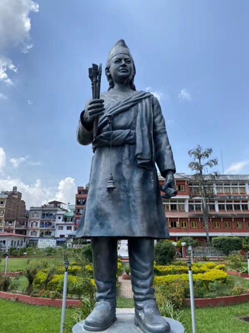 尼泊爾帕坦市的阿尼哥雕像。阿尼哥是中國元代來華的知名工藝家,已成為尼中友好的代表人物。習近平主席也在署名文章中提到了他。新華社記者張文攝