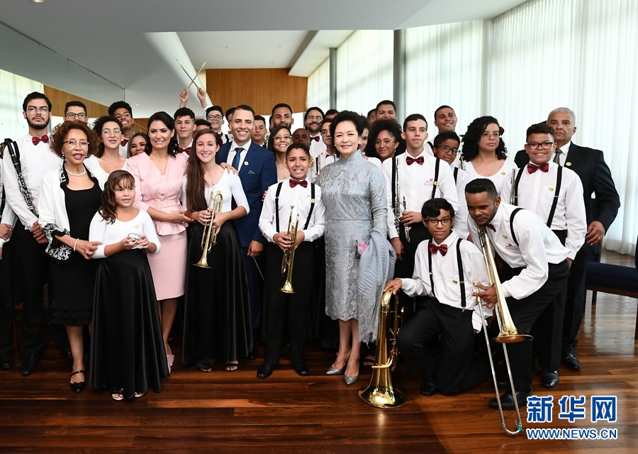 當(dāng)?shù)貢r(shí)間11月13日中午,應(yīng)巴西總統(tǒng)夫人米歇爾邀請,國家主席習(xí)近平夫人彭麗媛出席金磚國家領(lǐng)導(dǎo)人配偶活動(dòng)。這是彭麗媛同巴西青少年管樂團(tuán)演員們親切交流。 新華社記者 謝環(huán)馳 攝