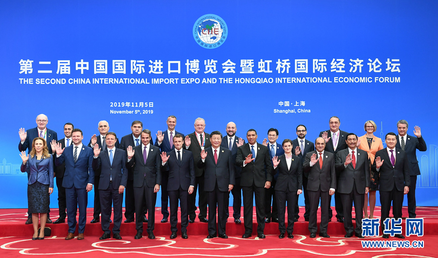 11月5日,第二屆中國(guó)國(guó)際進(jìn)口博覽會(huì)在上海國(guó)家會(huì)展中心開(kāi)幕。國(guó)家主席習(xí)近平出席開(kāi)幕式并發(fā)表題為《開(kāi)放合作 命運(yùn)與共》的主旨演講。這是開(kāi)幕式前,習(xí)近平同外方領(lǐng)導(dǎo)人集體合影。新華社記者謝環(huán)馳攝