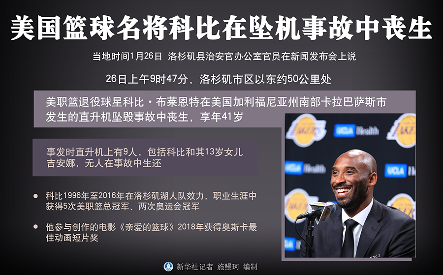圖表:美國(guó)籃球名將科比在墜機(jī)事故中喪生 新華社記者 施鰻珂 編制。