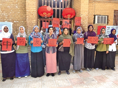 2月25日,在蘇丹喀土穆大學,數(shù)十名蘇丹喀土穆大學中文系的學生參加中國文化展覽活動,一起為中國抗擊疫情打氣。新華社發(fā)