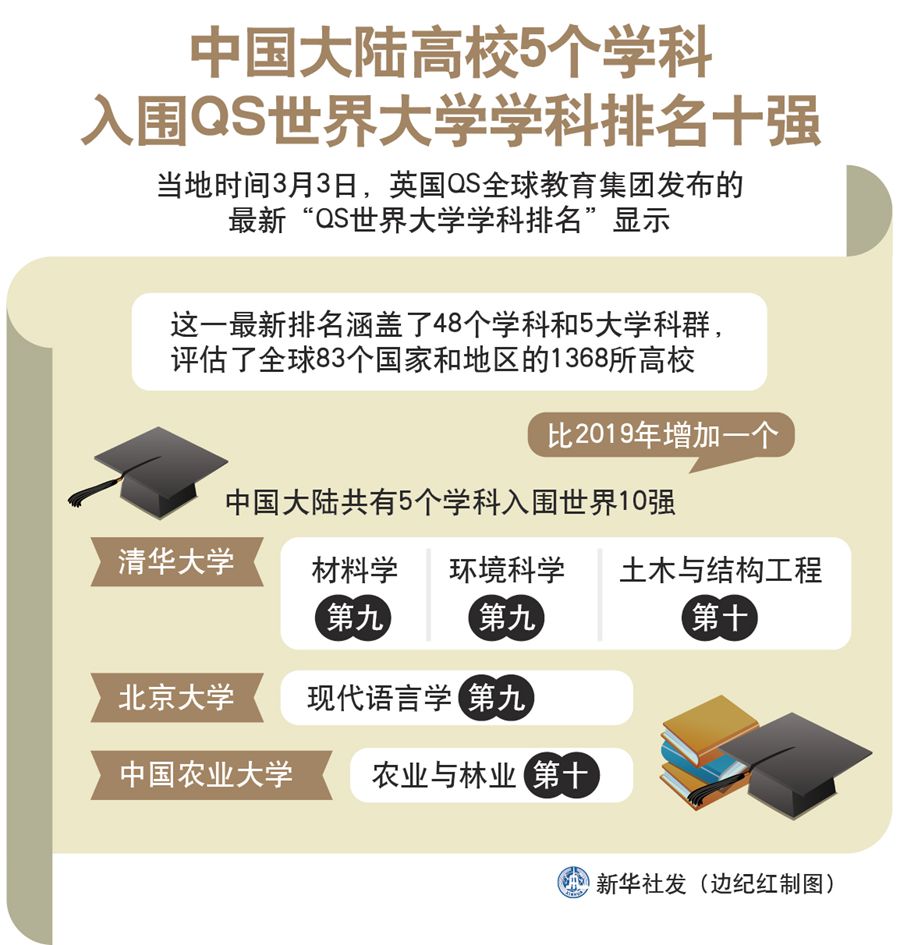中國大陸高校5個學科入圍QS世界大學學科排名十強-新華網