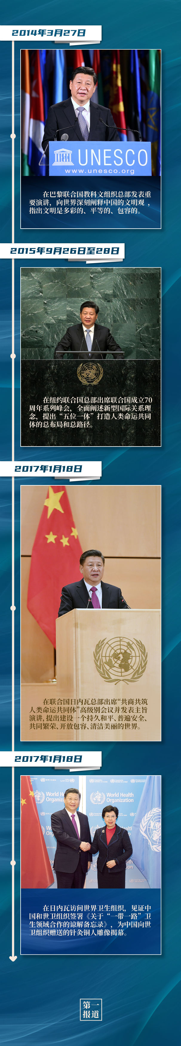 習主席指出,“支持聯合國發揮作用,維護聯合國權威和地位,是中國外交一項基本政策。”2013年以來,習主席多次會見聯合國主要官員,訪問聯合國總部及聯合國專門機構,出席一系列聯合國活動……親自推動中國同聯合國的合作,發出支持聯合國事業、捍衛多邊主義的中國強音。