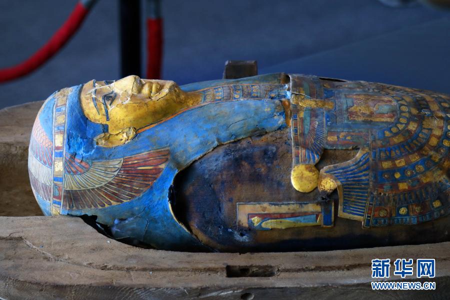 這是11月14日在埃及吉薩拍攝的彩繪木棺。新華社發(艾哈邁德·戈馬攝)
