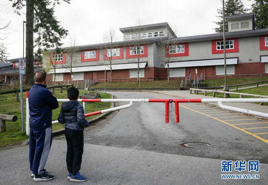 11月15日,在加拿大不列顛哥倫比亞省薩里,居民觀望一所因出現(xiàn)新冠疫情關(guān)閉的學(xué)校。新華社發(fā)(梁森攝)