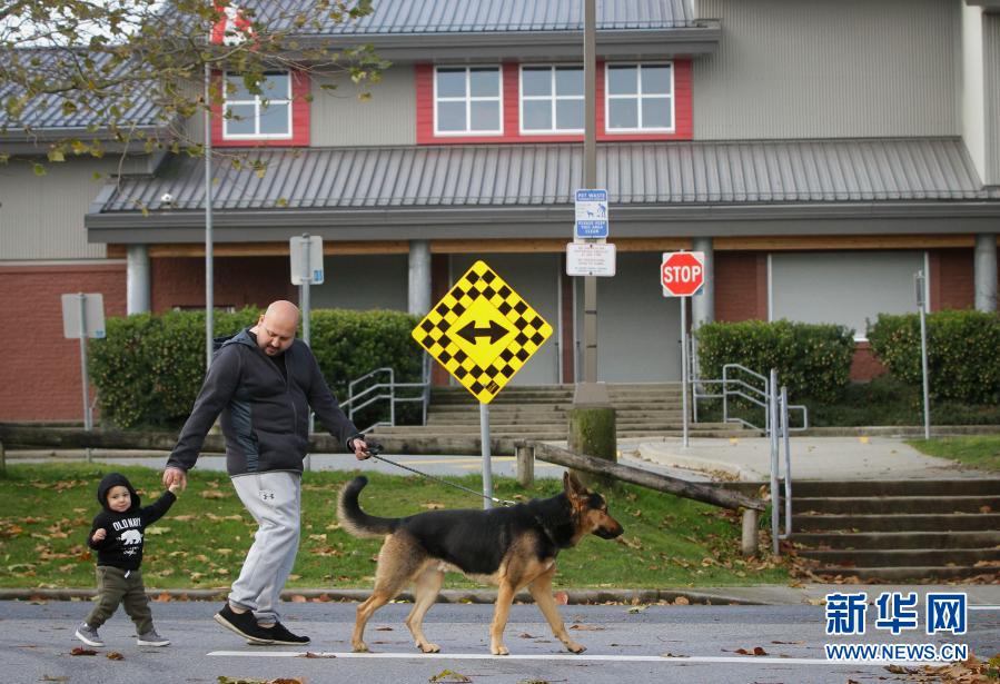 11月15日,在加拿大不列顛哥倫比亞省薩里,居民從一所因出現新冠疫情關閉的學校前走過。新華社發(梁森攝)