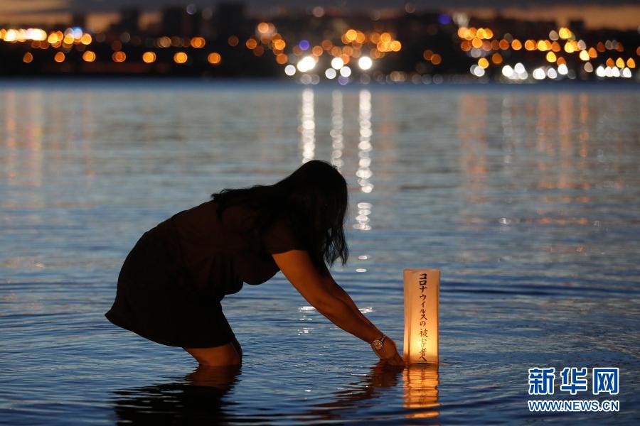 11月30日,在巴西首都巴西利亞,一名女子往湖中放入水燈。新華社發(盧西奧·塔沃拉攝)