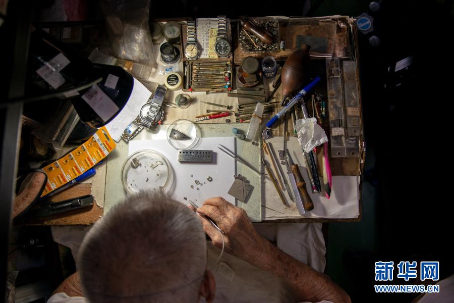 12月5日,在馬來西亞雪蘭莪州巴生的郁昌表行,韋華在維修手表。新華社發(張紋綜攝)