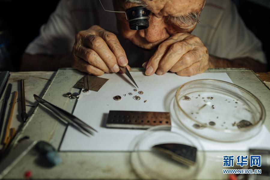 12月5日,在馬來西亞雪蘭莪州巴生的郁昌表行,韋華在維修手表。新華社記者 朱煒 攝