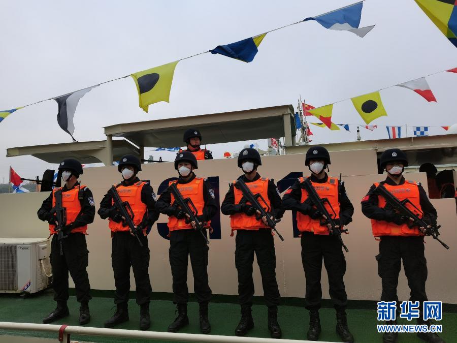 12月8日,執法人員在執法艇上等待啟航。新華社記者 莊北寧 攝