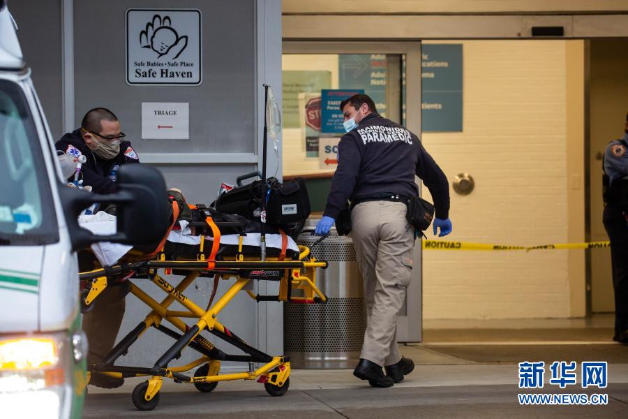 12月14日,在美國紐約,工作人員將一名患者送入醫(yī)院。新華社發(fā)(郭克 攝)