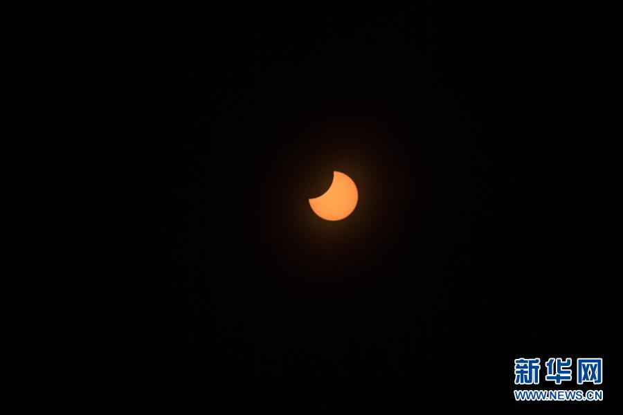 這是12月14日在智利首都圣地亞哥拍攝的日偏食。新華社發(豪爾赫·比列加斯 攝)