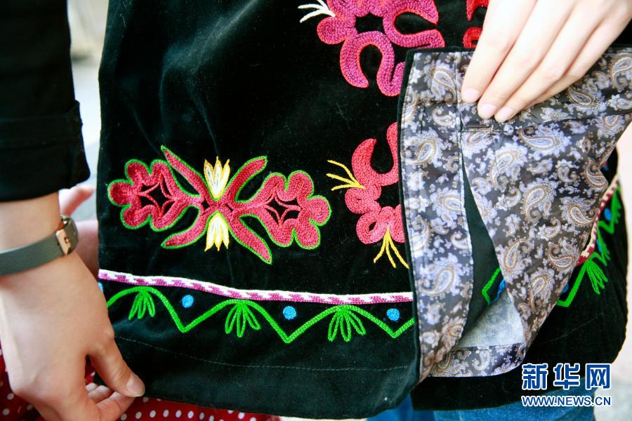 12月24日,一名女子在吉爾吉斯斯坦首都比什凱克舉行的裙袍大賽上展示裙袍。新華社發(fā)(羅曼 攝)