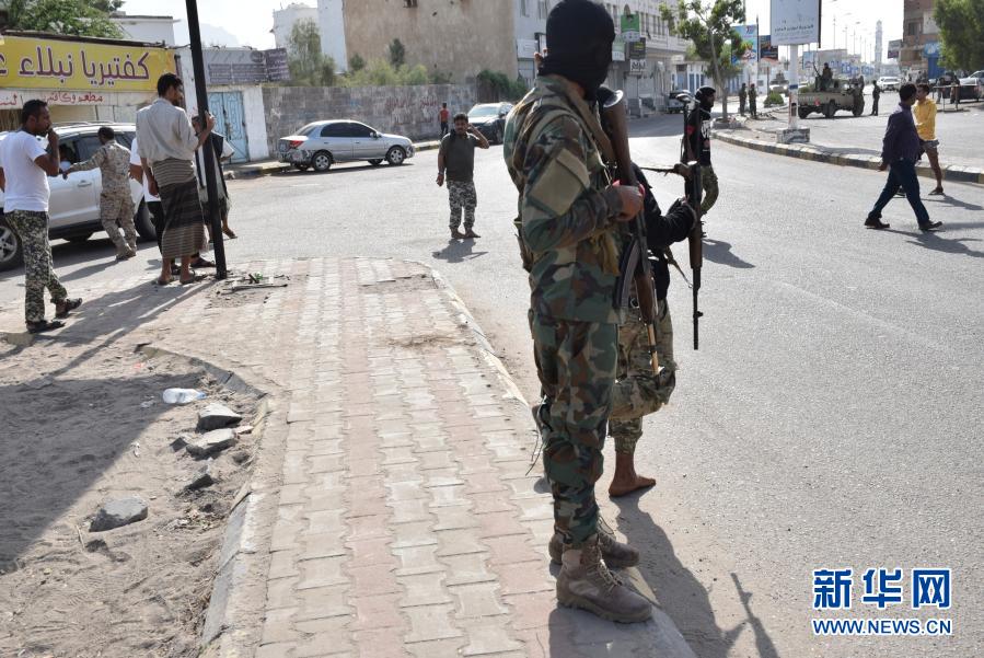 12月30日,在也門亞丁,政府軍士兵在爆炸后封鎖了亞丁國際機場的入口。新華社發(fā)(穆拉德·阿卜杜攝)