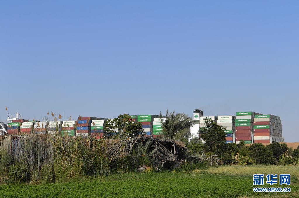 這是3月29日拍攝的移動至埃及蘇伊士運河正常航道上的重型貨輪。新華社記者 鄔惠我 攝