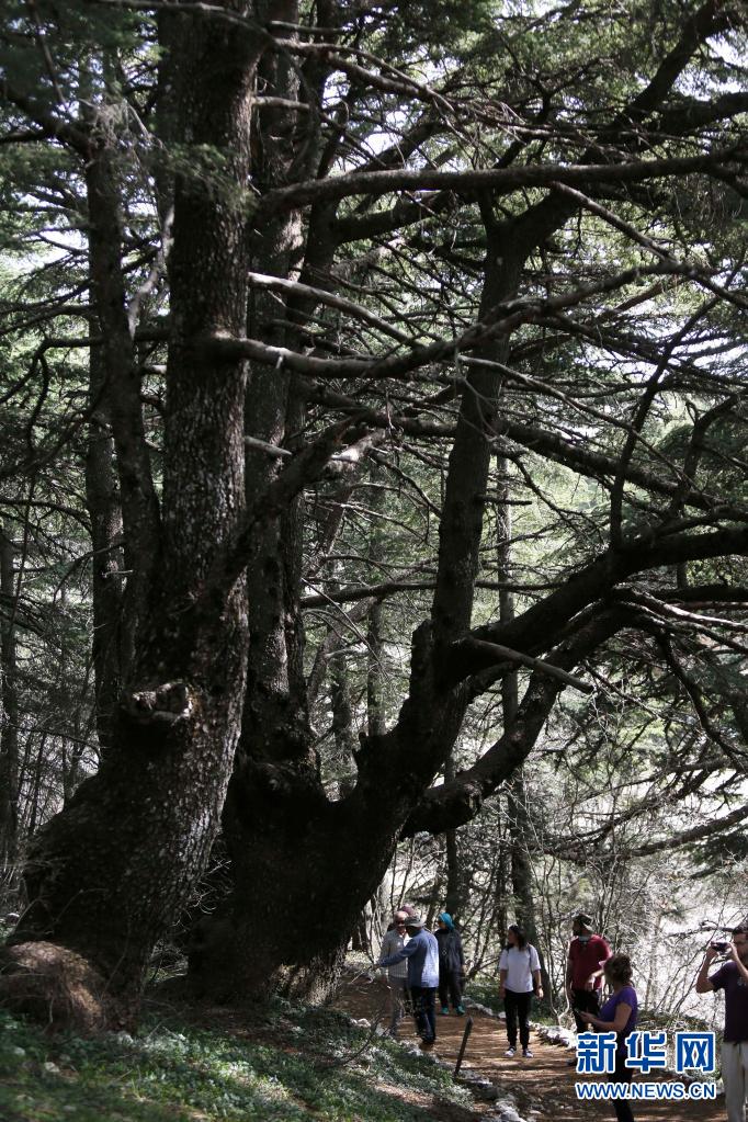 4月18日,游人在黎巴嫩巴魯克雪松保護區內游覽。