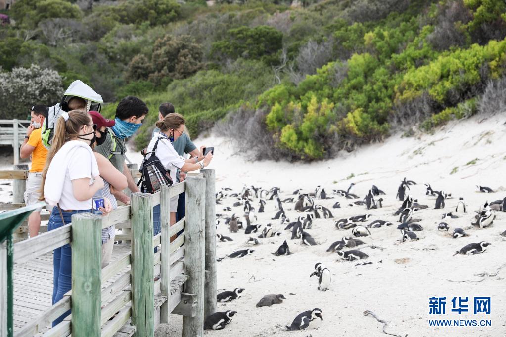4月25日,游客在南非西蒙鎮企鵝灘觀賞非洲企鵝。