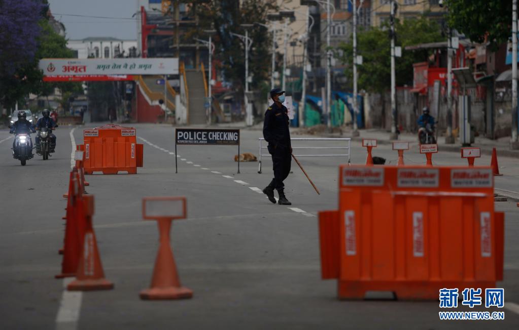 5月1日,警察在尼泊爾加德滿都的一處檢查點執勤。