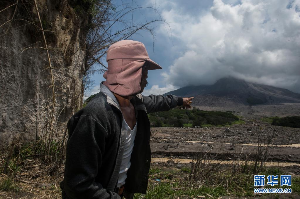 5月13日,在印度尼西亞北蘇門答臘省,一名男子望著錫納朋火山噴發火山灰。