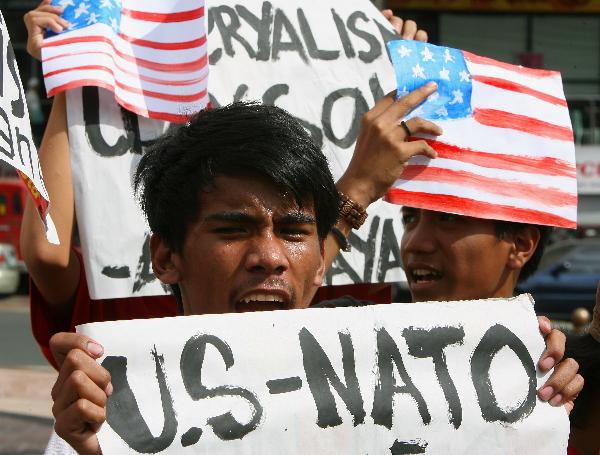 菲律賓民眾抗議多國部隊對利比亞進行軍事打擊