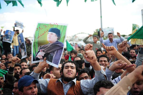 卡扎菲支持者在貝尼沃利德舉行示威游行